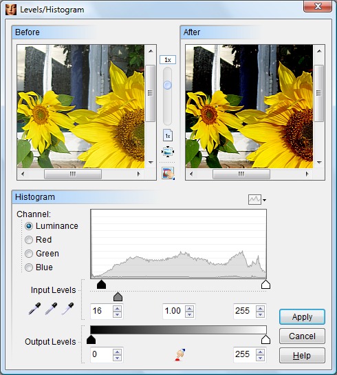 The Levels/Histogram command can be used to make very precise adjustments to a picture's overall brightness, contrast, and tonal range. This can be helpful in correcting photographs that are either underexposed (too dark) and overexposed (too light).