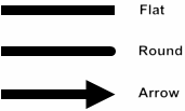 The Start Cap and End Cap controls determine how each end (or cap) of the line will be drawn. The Start Cap is the beginning of the line where you first click the mouse cursor. Available cap choices are Flat, Round and Arrow. The size of the arrow depends on the width of the line. The round option is only noticeable with thicker lines.