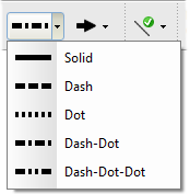The Line Style control determines how the body of the line will be drawn. Available line style choices are Solid, Dash, Dot, Dash-Dot and Dash-Dot-Dot.