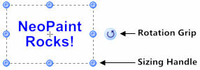 . Press down on the left mouse button and drag the grip in the direction you want the text to be rotated. As you move the mouse, the text will rotate. You can also choose a more precise rotation angle from the Option Panel.