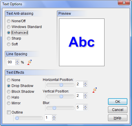 You can adjust the quality of the text and apply special effects using the Text Options button on the Option Panel.