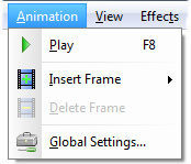 This section contains descriptions of the commands found in PixelNEO's Animation menu. The Animation menu only appears when editing Animated GIF or VisualNEO for Windows Cartoon images. For more information, select a command from the picture below:
